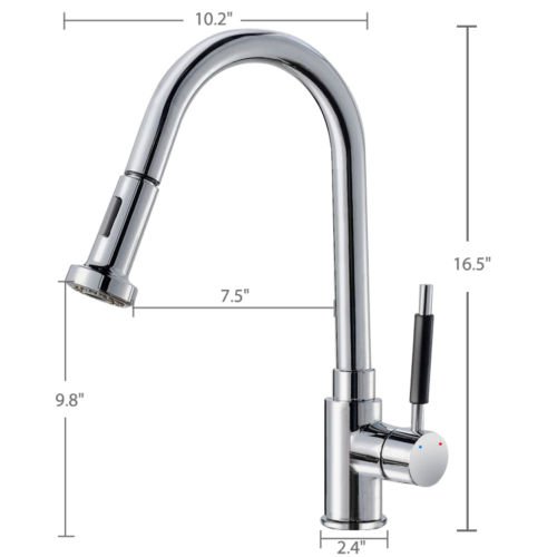 Modern kitchen pullout mixer spout tap with chrome finishDiffuser fitted to generate smooth water flowComplete with hot & cold water hosesHot and cold water signal.Water pressure:0.3-0.5MPA